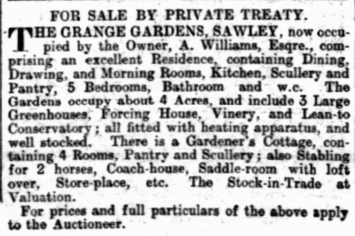 By 1911 it was owned by Arthur Williams – a coal merchant and market gardener. He put it up for sale the following year.