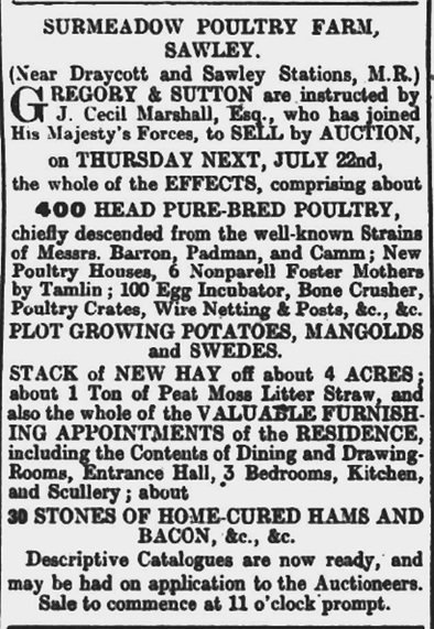 ‘Surmeadow’ was a 3-bedroom house and poultry farm. The ownership/tenancy of which seems to have changed frequently.
